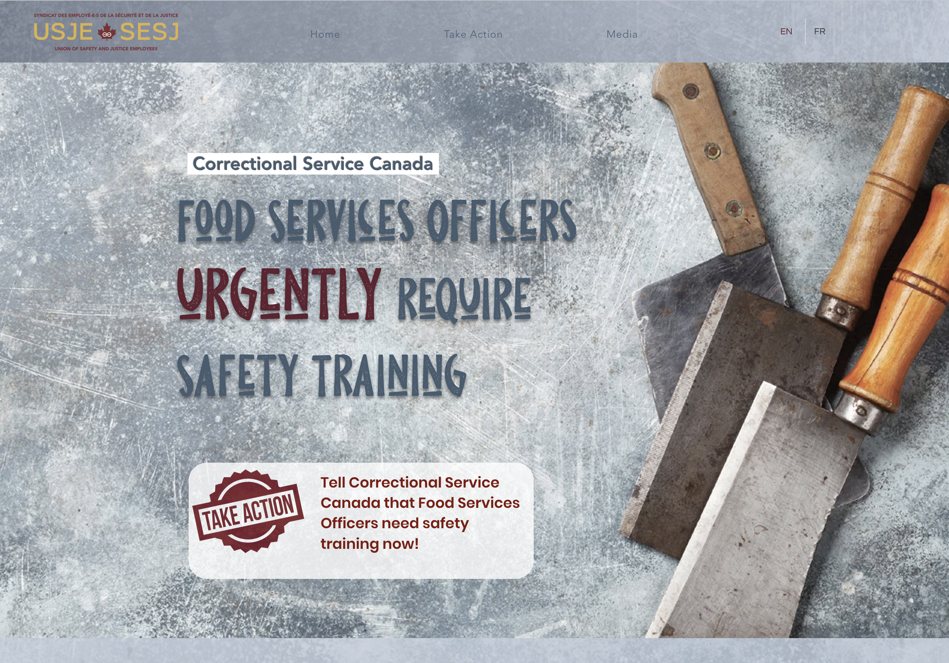 Food Services Officers at Correctional Services Canada were feeling unsafe at their jobs. A web site was launched to give them a voice and to gather support through a letter writing campaign.